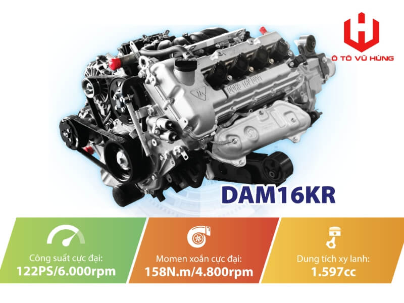 | Mã động cơ | DAM16KR (Động cơ Xăng, 4 kỳ, 4 xi lanh thẳng hàng) |