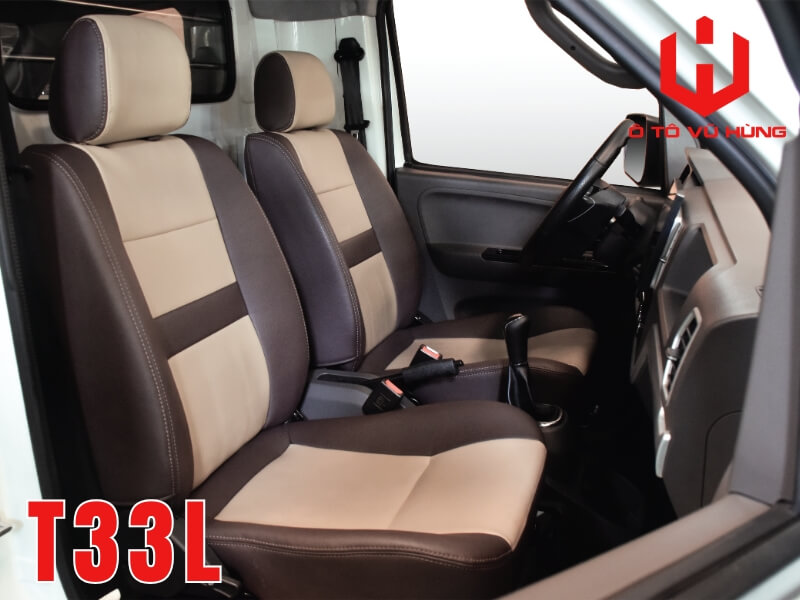 Bước vào bên trong khoang lái của Dothanh Missu T33L, người dùng sẽ lập tức bị thuyết phục bởi không gian rộng rãi được bố trí vô cùng khoa học dành cho 2 vị trí ngồi. Toàn bộ ghế ngồi trên xe đều được bọc da cao cấp êm ái, với thiết kế ôm sát cơ thể theo nguyên lý công thái học, giúp giảm thiểu tối đa cảm giác đau mỏi cột sống cho các bác tài phải làm việc liên tục 10-12 tiếng mỗi ngày .
