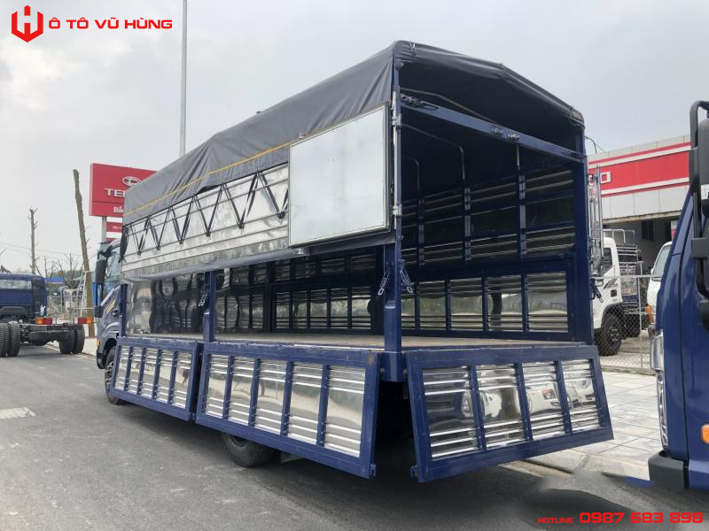 Kích thước thùng bạt là 4.890 x 2.000 x 1.950mm được thiết kế mở 5 bửng, thành bửng và vách được ốp inox chống oxy hóa và độ bền bỉ cao. Thùng kín có kích thước là 4.890 x 2.000 x 1.940mm.