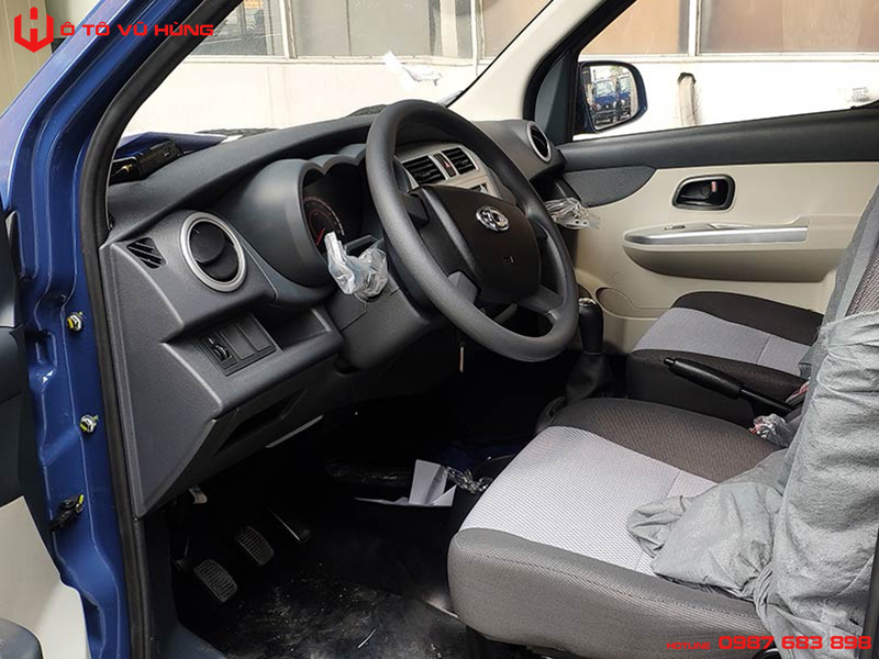 Chiếc xe tải nhỏ này khá nổi bật với khoang lái dành cho 2 người ngồi. Những chiếc ghế được bọc nệm êm ái sẽ là một người bạn đồng hành làm mang đến cho bạn cảm giác dễ chịu. Có thể hạn chế tối đa các tình trạng đau lưng khi di chuyển quá lâu. Vô lăng tay lái gật gù có thêm trợ lực điện nhẹ nhàng, êm ái làm mang đến khả năng đánh lái dễ dàng, kể cả với những người mới bắt đầu chạy xe.